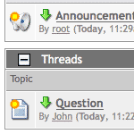 Sollte ein Thema Beiträge enthalten, die Sie noch nicht gelesen haben, wird es als ungelesen markiert und fett dargestellt. Vor dem Namen des Themas ist ein Pfeil nach unten zu sehen - er führt Sie direkt zum ersten ungelesenen Beitrag. Sie können das Thema übrigens durch einen Doppelklick auf das Themenicon als gelesen markieren.
